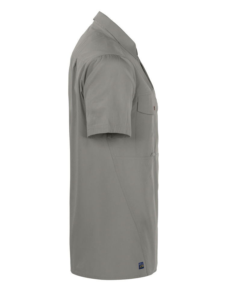 Camicia mezze maniche tecnica senza cuciture laterali. Quattro tasche sul petto, due con zip. Allacciatura con bottoni rapidi a pressione, coperta. Predisposizioni per tasche rigide supplementari. Giromanica ampio.