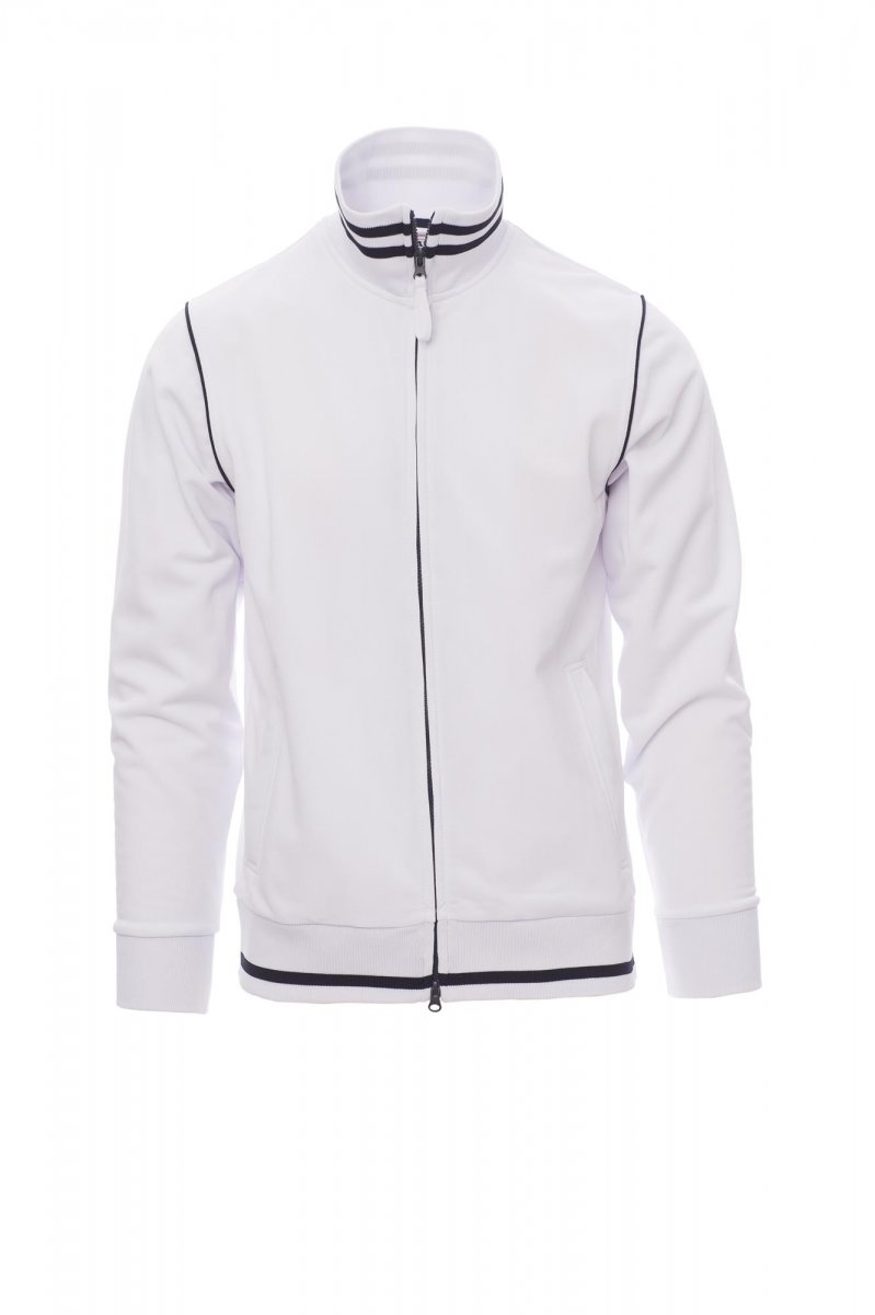 Felpa da uomo con zip intera coperta a contrasto, doppio cursore in metallo e dettagli sportivi.