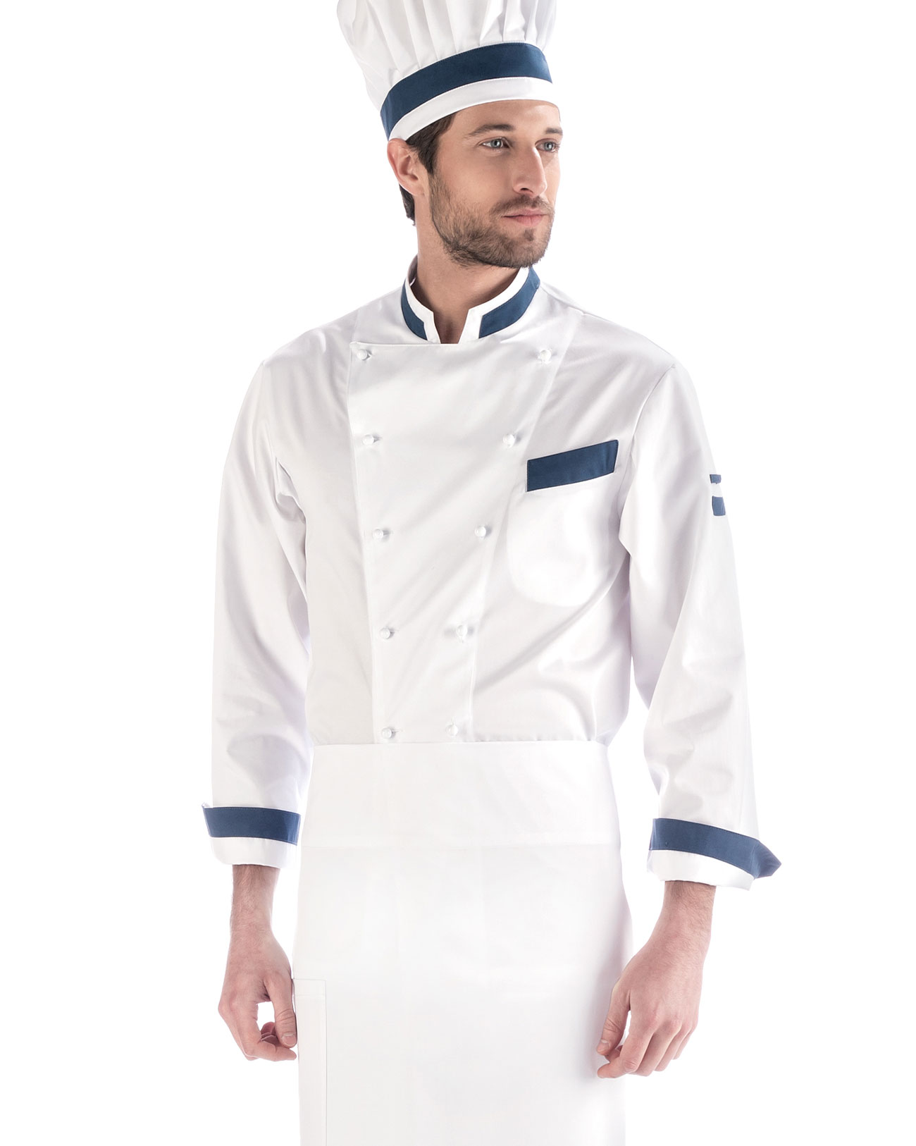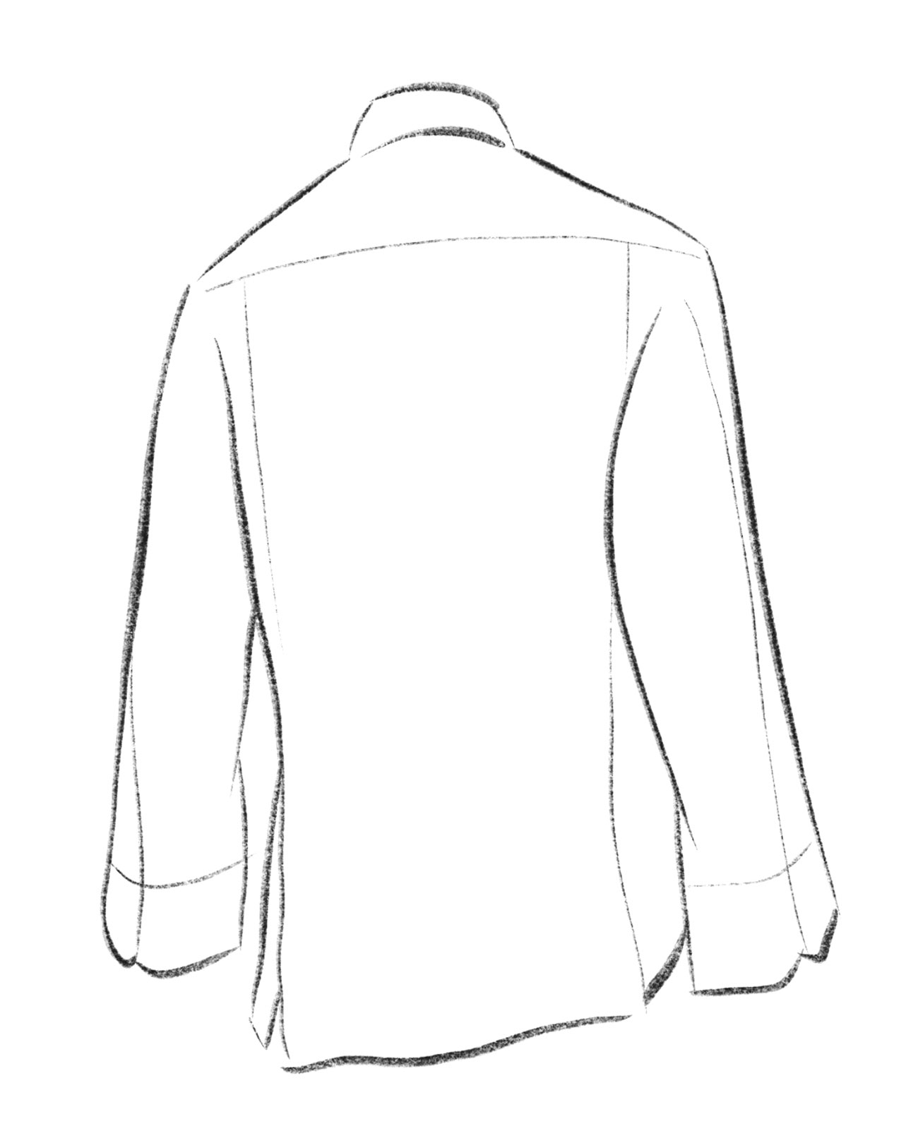 60% Cotone 40% Microfibra – gr 180 g/mq – Bianco Doppio ritorto facile stiro – 12 bottoni di sicurezza – Due tasche pinces schiena – Inserto in rete traspirante