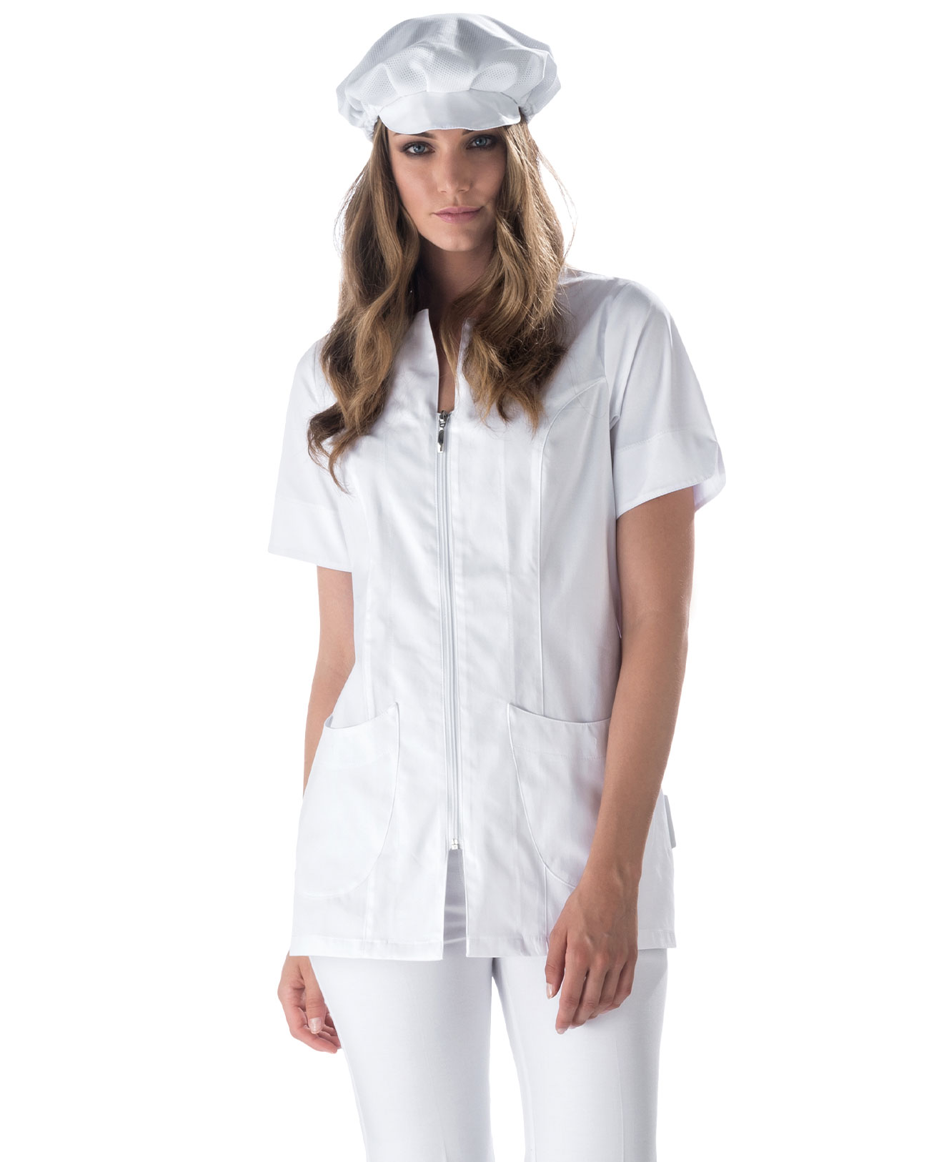 6o% Cotone 40% Microfibra – gr 180 g/mq – Bianco doppio ritorto facile stiro – Zip, due tasche davanti