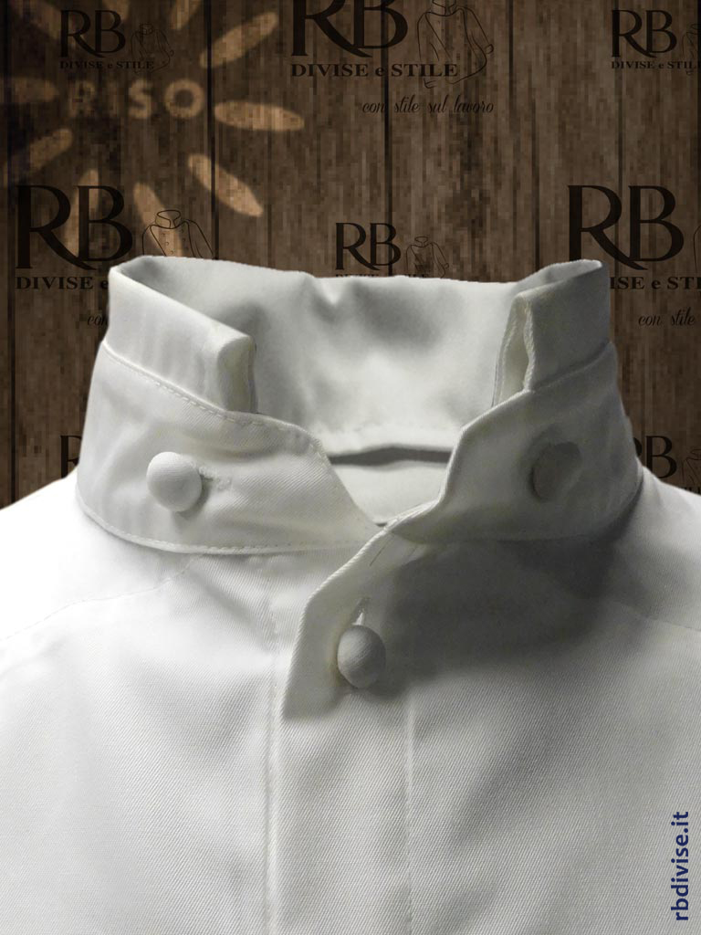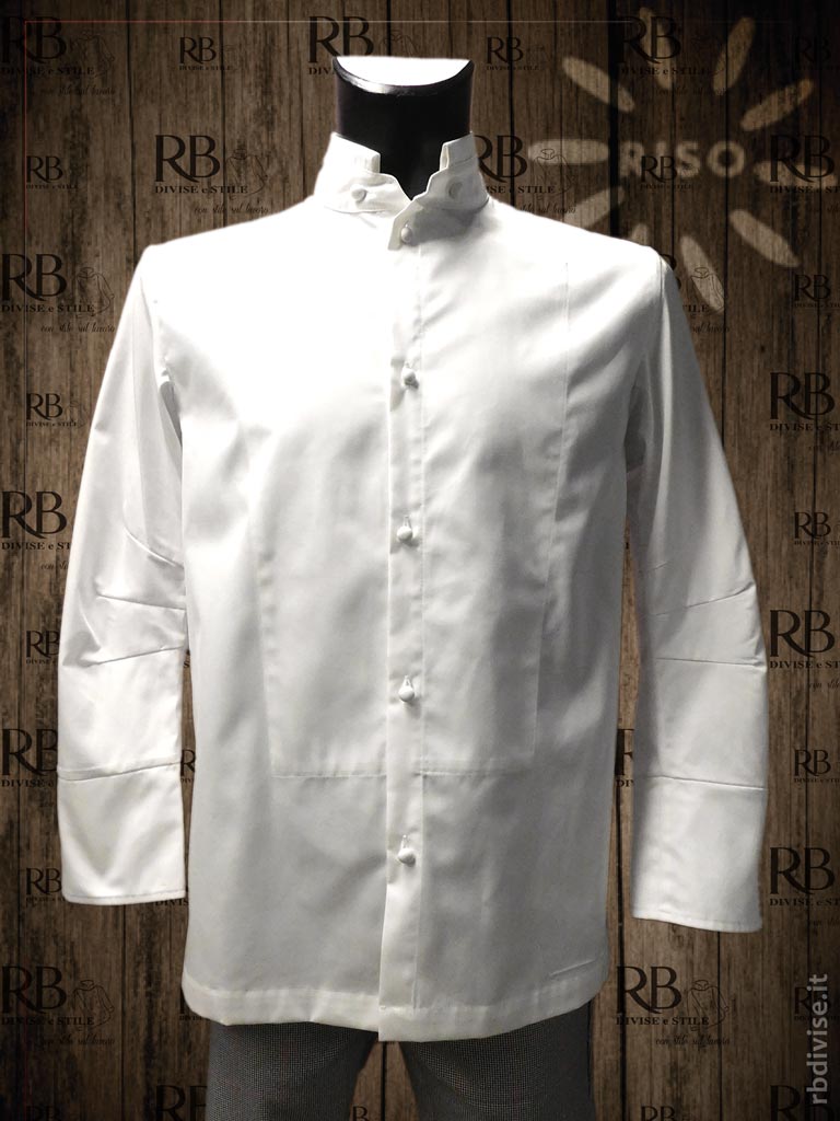 50% Poliestere 50% Cotone – 180 g/mq – Taglio sartoriale – Allacciatura con asole – Bottoni ricoperti in tessuto – Colletto con vela risvoltata all’interno – Manica ergonomica con pinces – Para manica elegante a “petalo” con taglio stondato – Sotto manica con prese d’aria ricamate – 2 spacchetti sul dietro