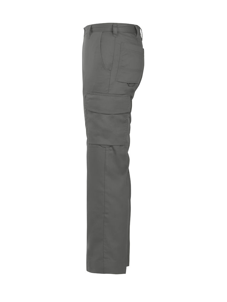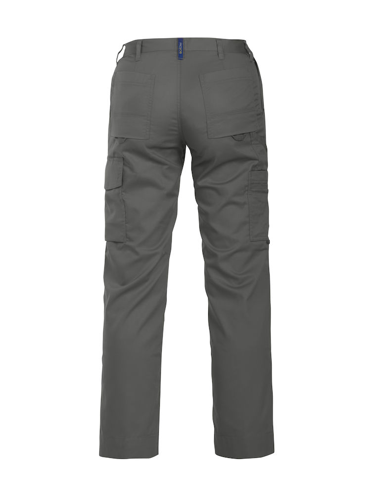 Pantaloni tecnici donna multitasche. Due tasche laterali e taschino con cerniera. Due tasche posteriori, un tascone cargo con vano porta telefono sagomato e predisposizione per tasca rigida supplementare, una tasca porta metro, livella, matita ed utensili. Anello porta chiavi e porta badge. Tasche interne per ginocchiere.