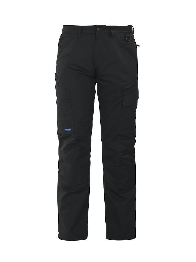 Pantalone tecnico multitasche. Due tasche frontali, taschino con cerniera. Due tasche posteriori. Un tascone cargo con vano porta telefono sagomato ed ulteriore tasca con zip. Tasche interne per ginocchiere. Predisposizione per tasche rigide supplementari.
