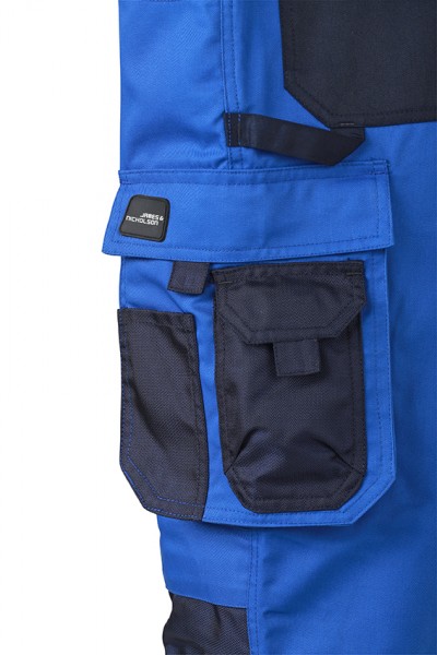 Tessuto esterno: 65% poliestere 35% Cotone Guarnizione: 100% Poliammide – Pantaloni da lavoro con dettagli funzionali – Tessuto misto robusto e resistente – Cintura girabile con passanti – Zona del ginocchio rinforzata con CORDURA – Cucitura tripla a prova di strappo – Tasche applicate – Diverse tasche per attrezzi – 2 tasche con chiusura lampo – Tasca per il metro – Comparti per matite – Taschino per cellulare – Elementi riflettenti (senza funzione di protezione/no PPE) sul fronte e sul retro
