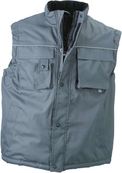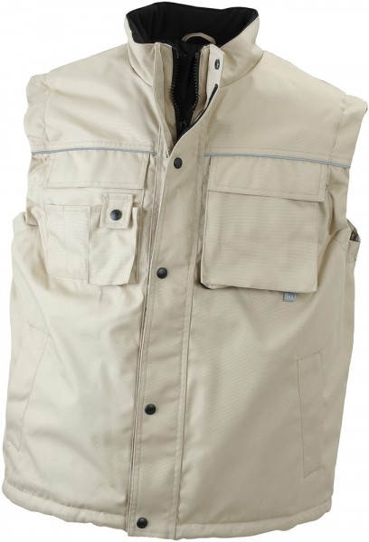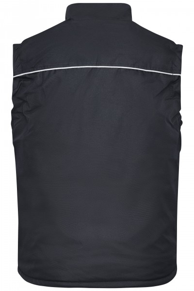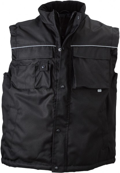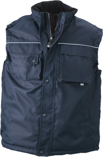 Tessuto esterno: 100% Poliestere Fodera: 100% Poliammide Imbottitura: 100% Poliestere – Bionic Finish – Gilet da lavoro resistente ed imbottito – Antivento – Antipioggia – Resistente allo sporco – Interno collo in pile – 2 grandi tasche sul petto – Taschino portacellulare – Portapenne sulla tasca destra – 2 ampie tasche intere – Più lungo sulla schiena – Striscia reflettente (senza funzione di protezione/no PPE) sul fronte e sul retro – Cerniera ornamentale sulla schiena e sulla tasca sinistra